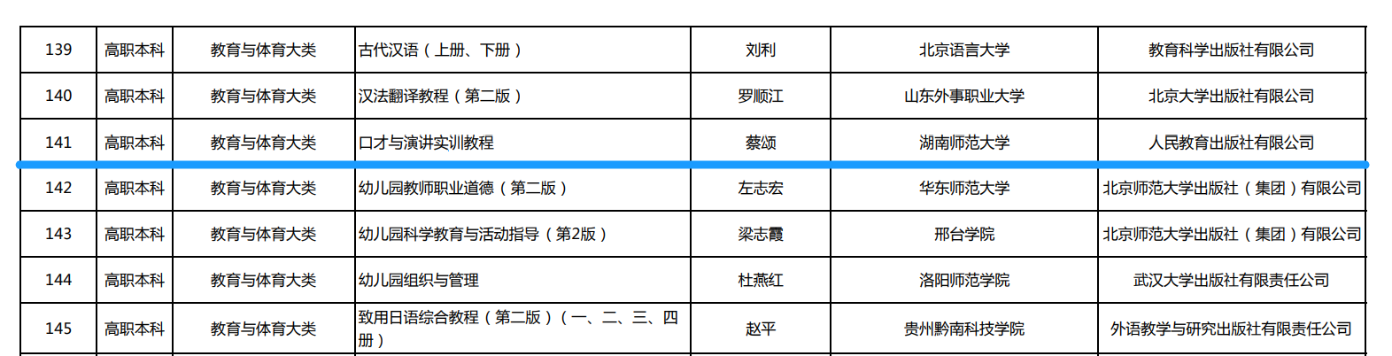 (通訊員 安寧 楊洋)近日,教育部辦公廳印發了《關于公布首批“十四五”職業教育國家規劃教材書目的通知》,由我校國際漢語文化學院院長蔡頌教授主編的《口才與演講實訓教程》成功入選,是我省高校在“高職本科組—教育與體育大類”中的唯一入選教材。