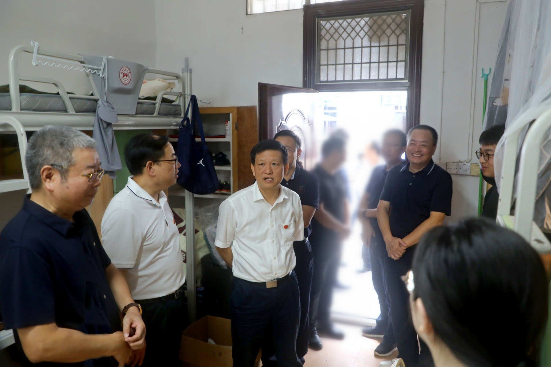 (記者 馬鐵泉 黃依依)9月4日上午,校黨委書記蔣洪新帶隊調研學校學生宿舍保障工作并開展安全檢查。校黨委副書記周俊武,副校長劉懷德、王輝陪同走訪檢查。