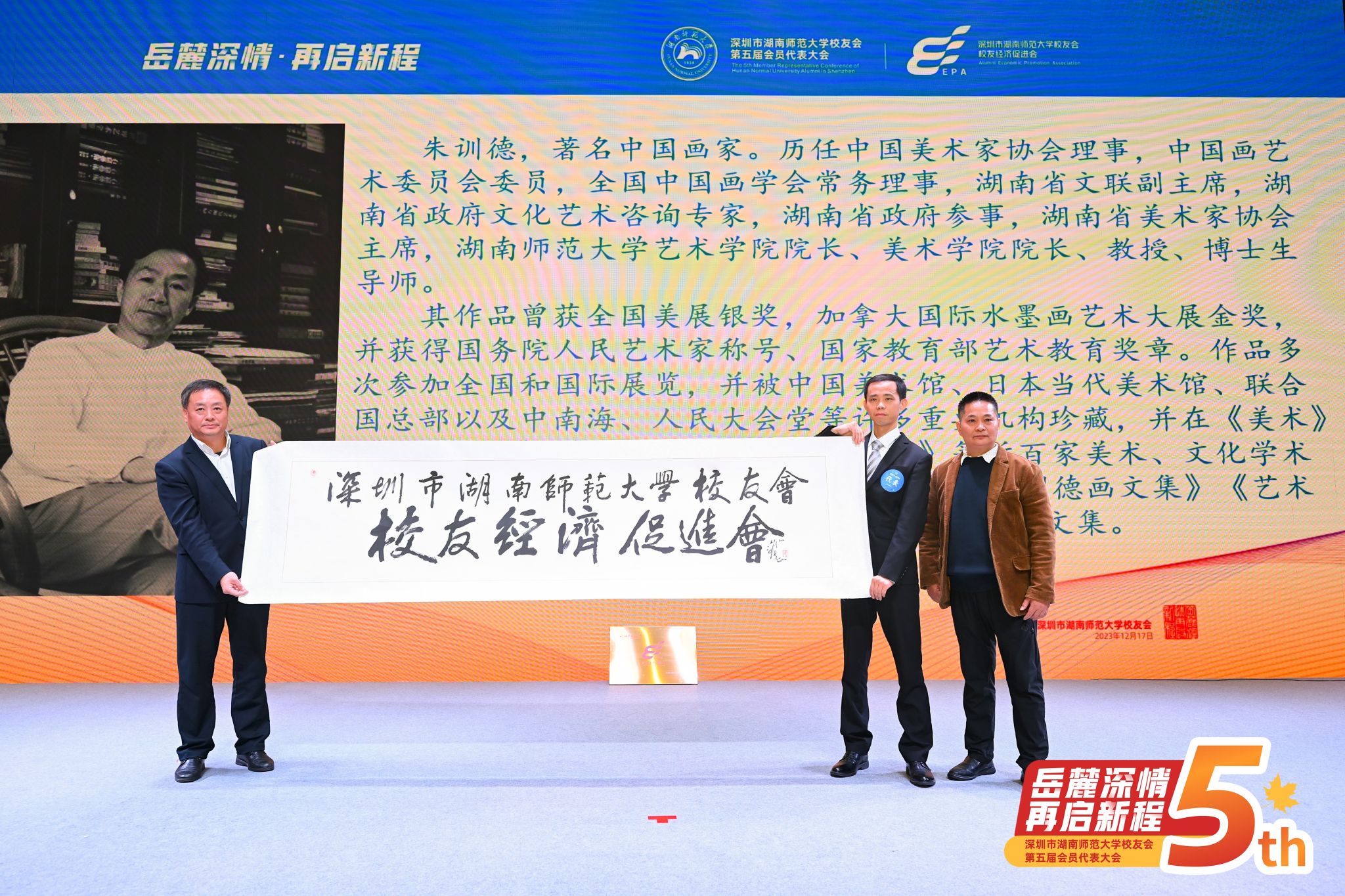 會上,深圳校友會副會長李干祥宣讀成立批復。周俊武為會長徐益、副會長兼秘書長林長清頒發(fā)聘書,王輝為促進會授牌并贈送名家題詞,黃麗萍為促進會授會旗。