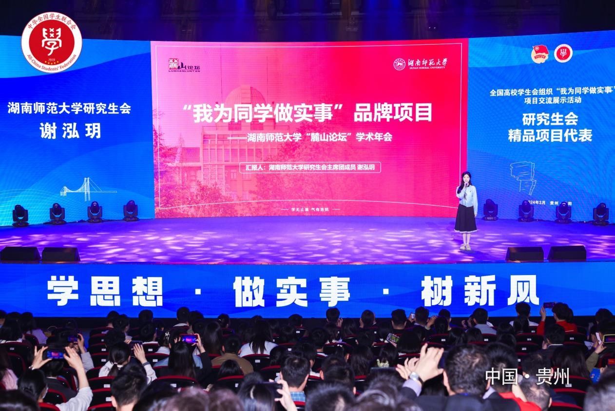 (通訊員 劉家瑋 袁理 吳泓錕)3月21—24日,全國高校學生會組織“我為同學做實事”項目交流展示活動在貴陽舉行。我校校學生會項目獲評全國優秀項目,研究生會項目獲評全國優秀項目、全國精品項目。研究生會項目作為全國四所高校代表之一、全國研究生會唯一、湖南省唯一項目與清華大學等高校在閉幕式上進行展示。