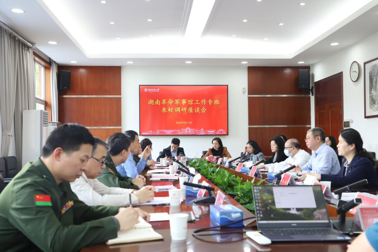 湖南博物院、省退役軍人服務(wù)中心、長(zhǎng)沙警備區(qū)、岳麓區(qū)人民武裝部和我校相關(guān)單位負(fù)責(zé)人、部分專家參加座談會(huì)。