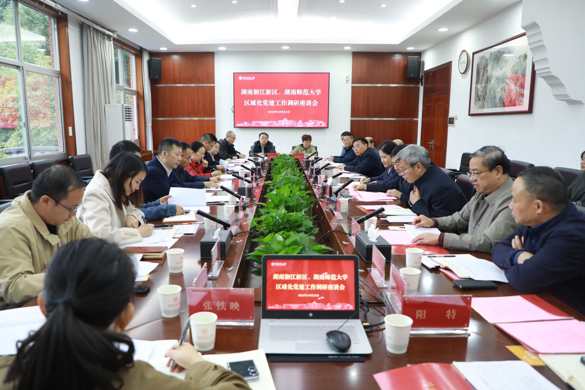 (記者 李采薇 黃依依)10月21日下午,湖南湘江新區(qū)組織工作部來校調(diào)研區(qū)域化黨建工作。湘江新區(qū)(長沙高新區(qū))黨工委委員、組織工作部部長,岳麓區(qū)委常委、組織部部長師軍,我校黨委副書記段巍出席調(diào)研座談會。會議由校黨委委員、組織部部長沈又紅主持。