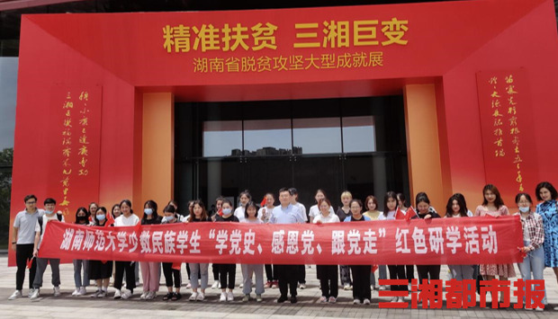三湘都市報·新湖南客戶端6月5日訊(通訊員 努熱曼姑麗 記者 楊斯涵 黃京)感受三湘大地偉大戰役的輝煌,6月4日,湖南師范大學組織來自全校12個學院40余名少數民族學生代表前往湖南省美術館,參觀“精準扶貧 三湘巨變——湖南省脫貧攻堅大型成就展”。
