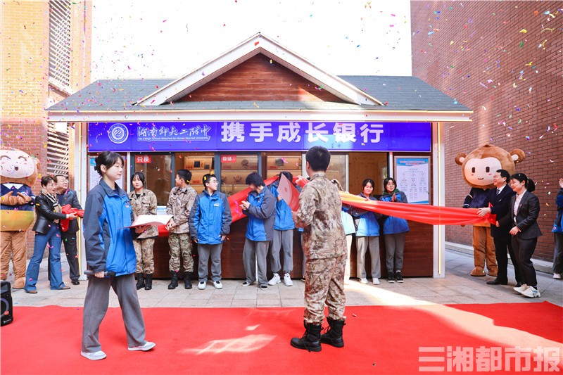 三湘都市報12月21日訊(通訊員 錢佳 全媒體記者 楊斯涵 黃京) 聽說湖南師大第二附屬中學校園里開業了一家特殊的銀行?這家特殊的銀行流通的不是人民幣,而是“成長幣”,銀行的柜員不是老師,而都是學生。近日,湖南師大二附中攜手成長銀行正式開業,全校師生共同見證了這場特別的儀式。
