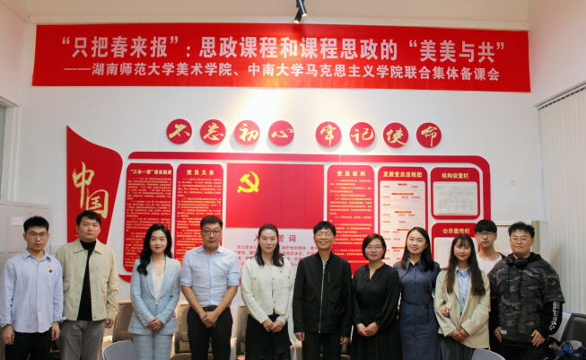 10月19日下午,湖南師范大學(xué)美術(shù)學(xué)院在該校美術(shù)樓與中南大學(xué)馬克思主義學(xué)院舉辦聯(lián)合集體備課會。此次會議由湖南師范大學(xué)美術(shù)學(xué)院黨委副書記莫南和中南大學(xué)馬克思主義學(xué)院胡曉副教授聯(lián)合主持。