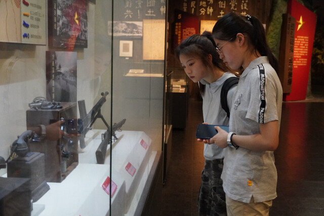 在實地走訪中,實踐團前往通道轉(zhuǎn)兵紀(jì)念館內(nèi)進(jìn)行參觀、學(xué)習(xí)和調(diào)研。通過參觀紅色侗鄉(xiāng)主題展區(qū)、紅軍英勇戰(zhàn)役、轉(zhuǎn)兵會議等有關(guān)展品和故事陳列,實踐團進(jìn)一步認(rèn)識到了通道轉(zhuǎn)兵的歷史意義和現(xiàn)實價值,更加深入地了解了當(dāng)?shù)氐募t色文化發(fā)展歷程。