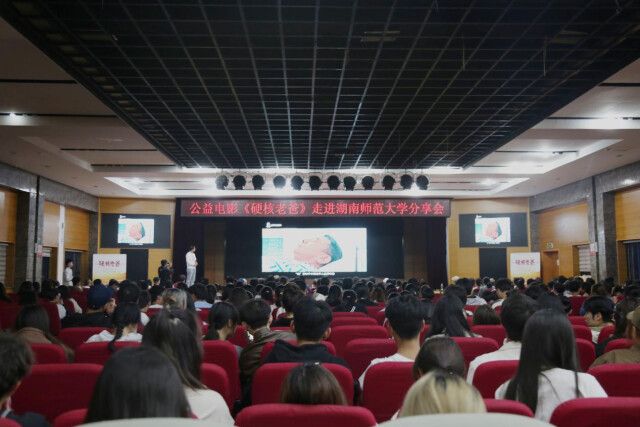 《硬核老爸》主創團隊,學校離退休處、黨委宣傳部、學工部等部門負責同志,致公黨湖南師范大學委員會黨員代表以及300余名師生參加分享會。據悉,該影片將于2023年10月22日在全國首映。