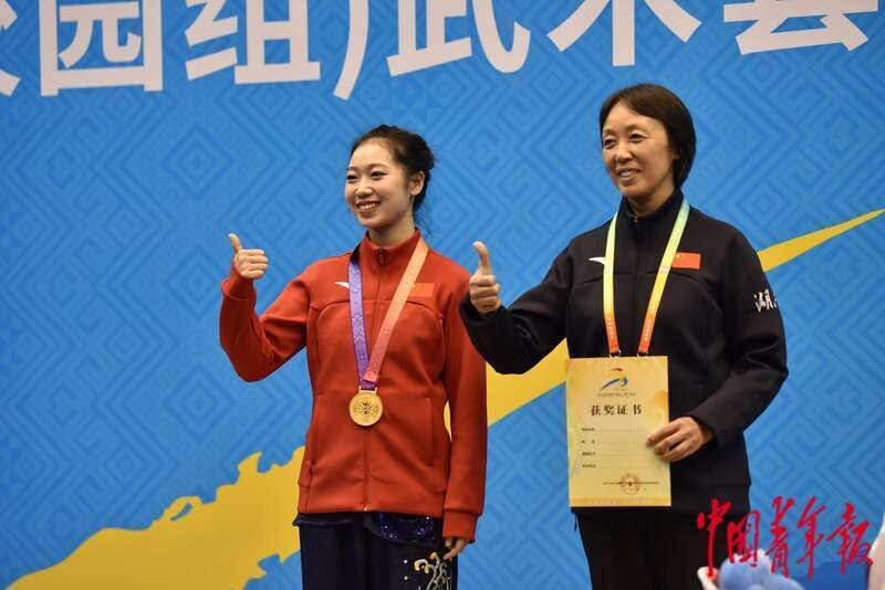 中國青年報客戶端南寧11月7日電(中青報·中青網記者慈鑫文及視頻)這是湖南師范大學武術與民族傳統體育專業大四學生文彧,第二次參加全國最高水平的學生運動會。2021年的暑假,文彧參加了在山東青島舉行的第14屆全國學生運動會,但當時在個人比賽項目上的成績不理想。這次在廣西南寧,文彧終于站上了學青會的最高領獎臺,這也是對她習武12年的最好褒獎。