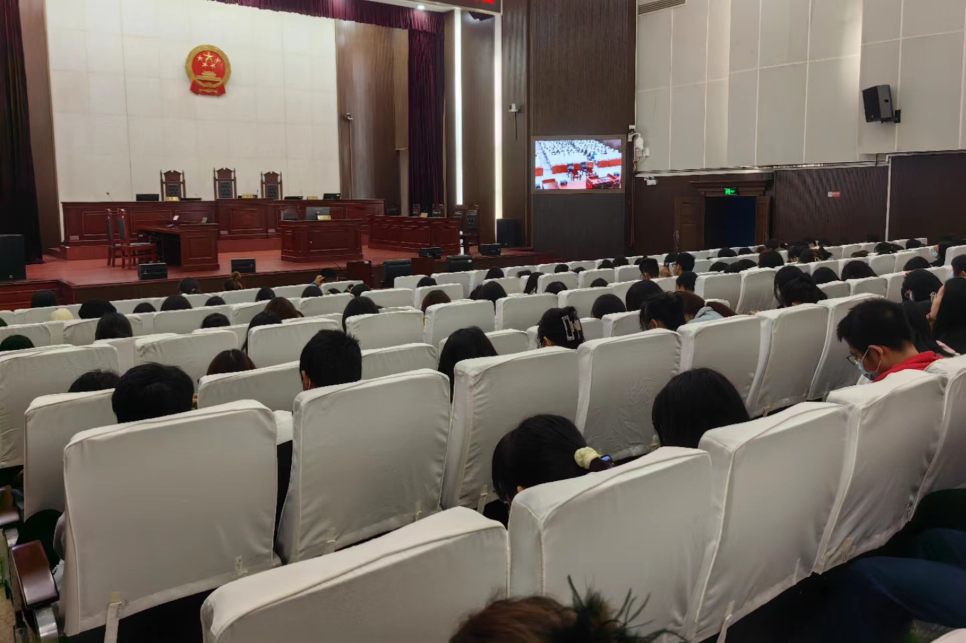 為了深入學習貫徹黨的二十大精神,認真貫徹落實習近平總書記關于教育的重要論述和系列重要講話指示批示精神,加強大學生法治宣傳教育,推動高校法治建設,培養法治中國建設接班人。11月16日下午,在湖南師范大學馬克思主義學院“思想道德與法治”課程團隊鄧驗老師、丁峰老師,以及思政系主任伍屏芝老師的組織下,該校248名本科生“零距離”旁聽“胡某某、劉某幫信罪”的公開審理。