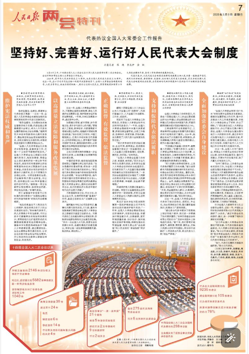 “修改監督法,為加強憲法實施監督提供有力支撐;代表法修正草案提請大會審議,將為人大代表依法履職提供有力法治保障。”湖南師范大學法學院教授肖北庚代表表示,健全保證憲法全面實施制度體系,系統完善憲法實施機制,將推動憲法在新時代展現更強生命力。