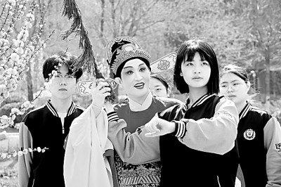 山東省高密市豪邁高中,茂腔傳承人孫秀芝在指導中學生學習茂腔表演技巧。李海濤攝/光明圖片