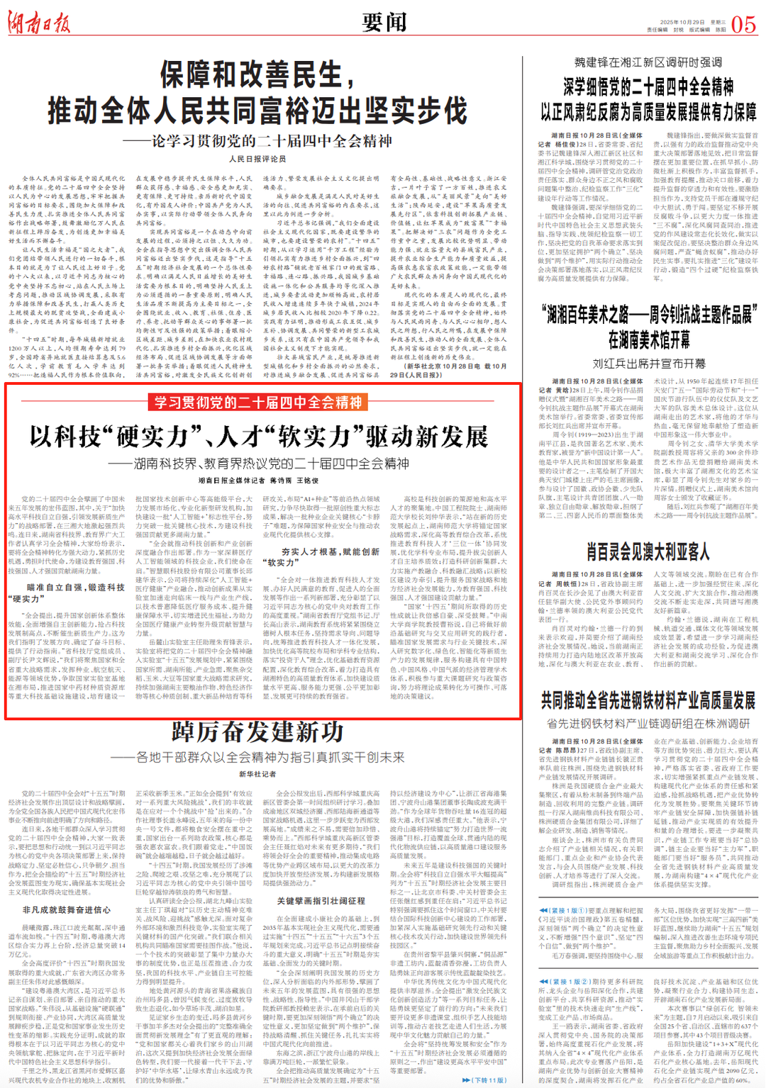 黨的二十屆四中全會擘畫了中國未來五年發(fā)展的宏偉藍圖,其中,關于“加快高水平科技自立自強,引領發(fā)展新質生產(chǎn)力”的戰(zhàn)略部署,在三湘大地激起強烈共鳴。連日來,湖南省科技界、教育界廣大工作者認真學習全會精神,大家紛紛表示,要將全會精神轉化為強大動力,緊抓歷史機遇,勇?lián)鷷r代使命,為建設教育強國、科技強國、人才強國貢獻湖南力量。