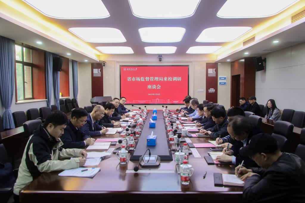 (記者 馬鐵泉 馮振輝)3月8日上午,湖南省市場監督管理局局長錢俊君、總工程師李丁一行來我校調研座談。我校黨委書記蔣洪新、副校長劉懷德陪同調研。座談會由校黨委副書記周俊武主持。